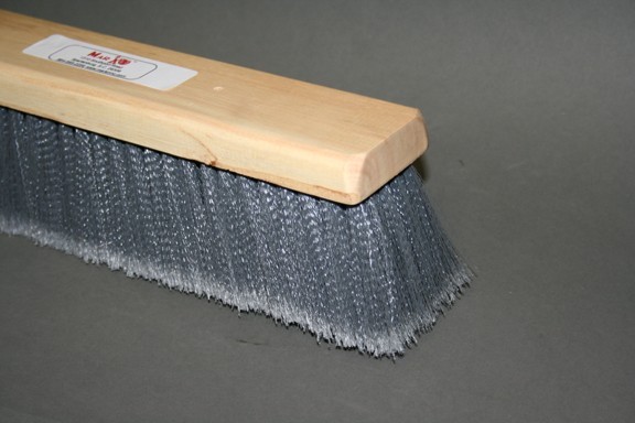 Fine dust sweeping may be achieved using this soft acrylic fiber mounted on a hardwood block. The soft, self-flagging, grey-colored bristles are great for replacing dust mops, but are not recommended for use with oil-based sweeping compounds or oily floors. Bristle trim filled tightly across a hardwood block. Dimensions: 24-inch length and 3-inch bristle trim.