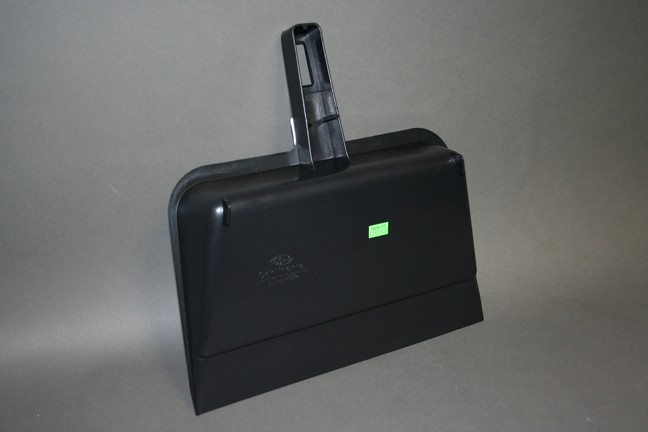 This extremely durable pan is manufactured using an industrial strength polymer with a 12" wide flat edge. The pan also features molded cleaning teeth, threaded handle port to add a standard handle, a deep recessed pan, and finger grip comfort handle. Color: dark brown.